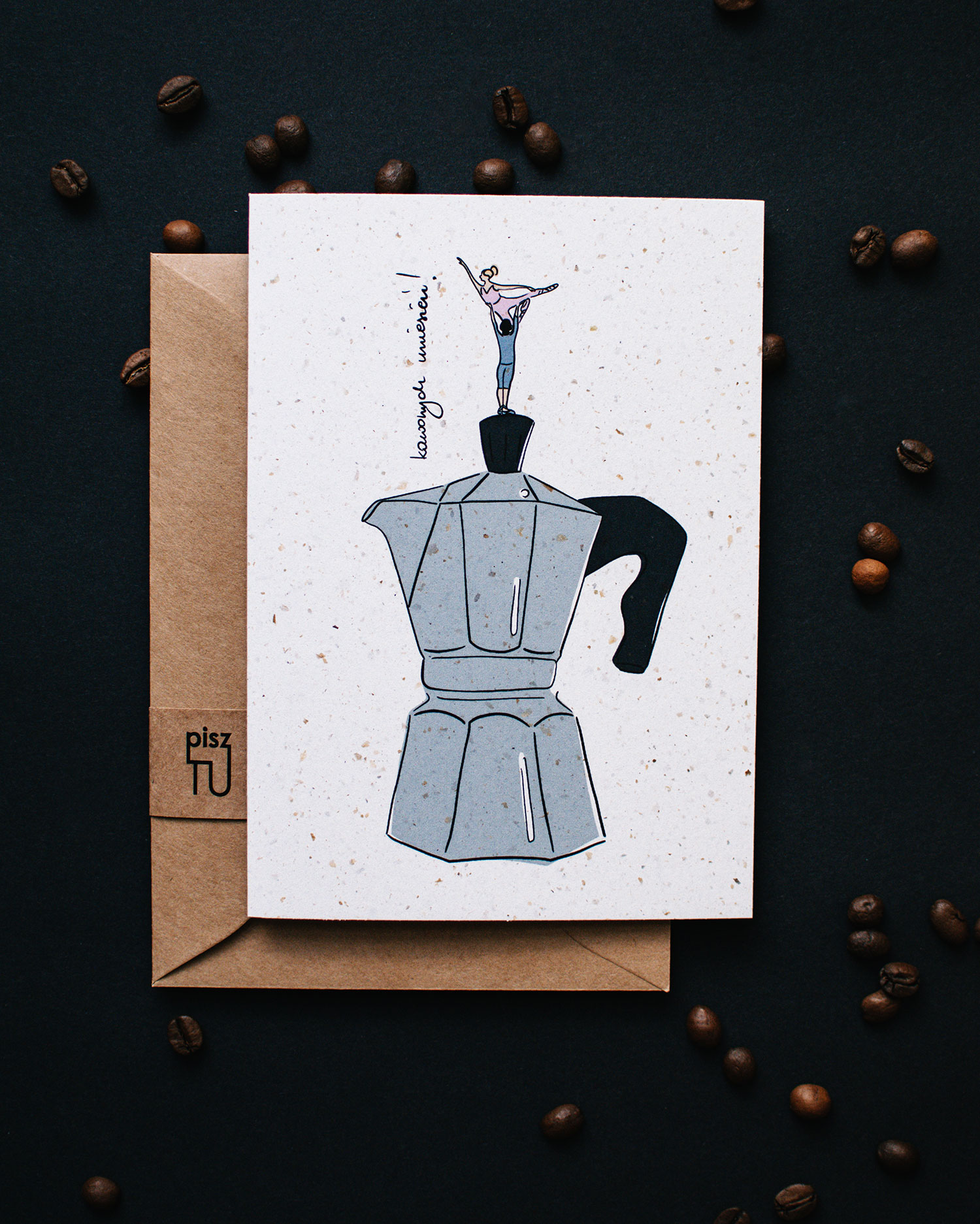 Wszyscy kawowi smakosze pragną „Kawowych uniesień” przy każdej czarce lub filiżance kawy.  Kolejna kartka z kawiarką, z serii kawowych alternatyw będzie miłym upominkiem dla każdego fana małej czarnej na różne okazje – urodziny, imieniny, ślub, czy wygrana w kawowych zawodach! „Kawowe uniesienia”, to nie lada gratka, ponieważ wykonane są na przepięknym papierze, który zawiera drobinki prawdziwej kawy.