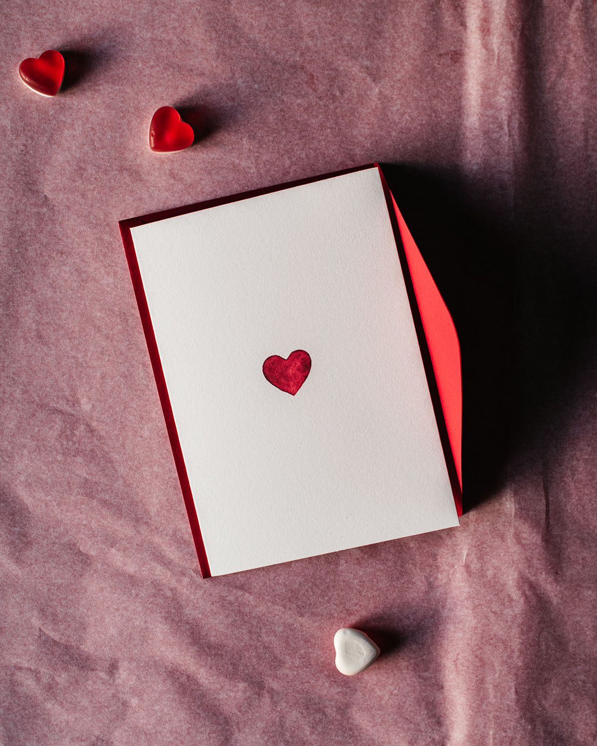 Wzór inspirowany jest tradycyjnym symbolem miłości – sercem. Subtelne, ale wyraziste detale w prostym i nowoczesnym i wydaniu sprawiają, że kartka jest zarówno elegancka, jak i ponadczasowa.