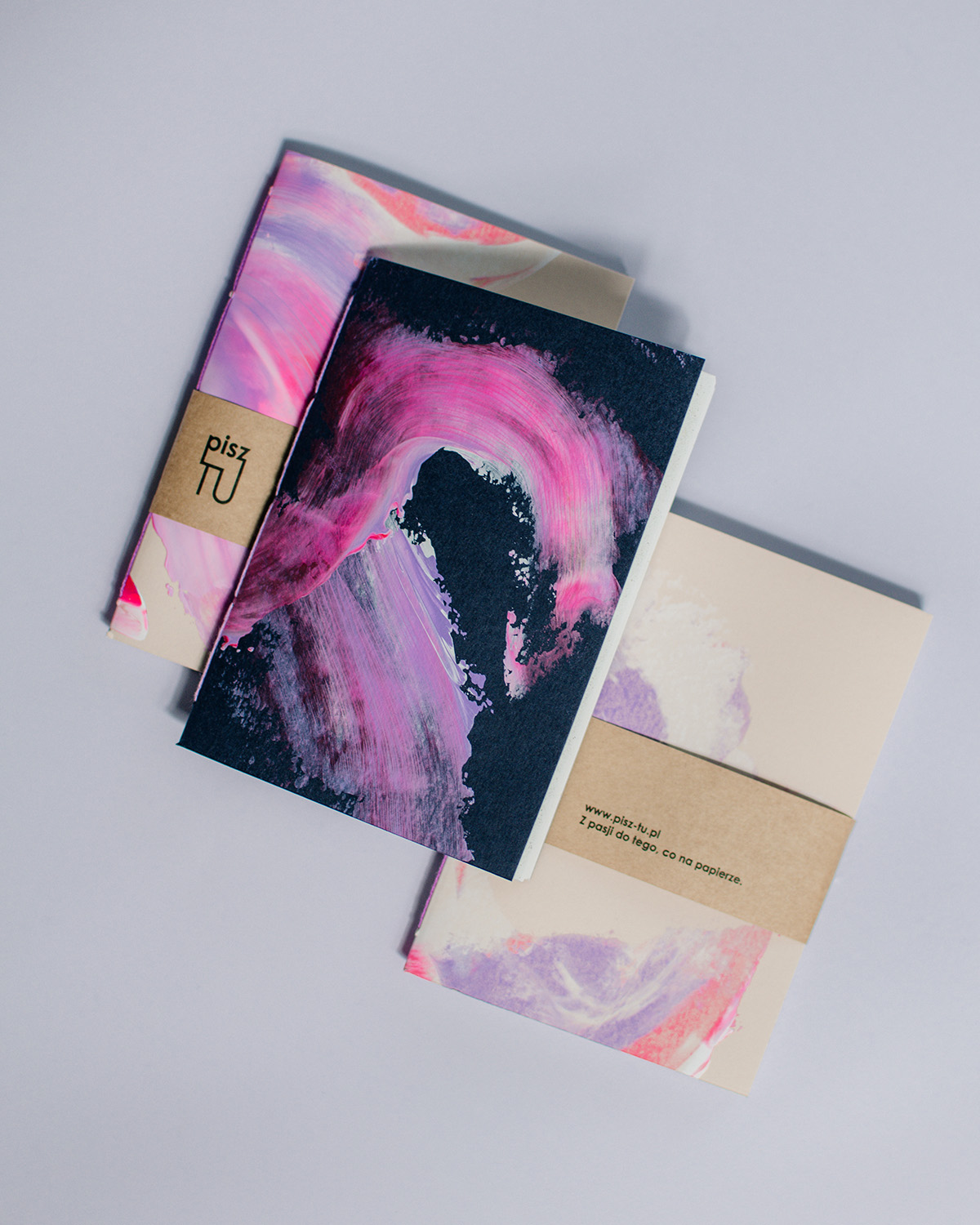 Każdy zeszyt jest unikatowy i jedyny w swoim rodzaju, dzięki ręcznemu wykonaniu – składa się na nie malowanie okładki, szycie i oprawa. Otwiera się na płasko.
